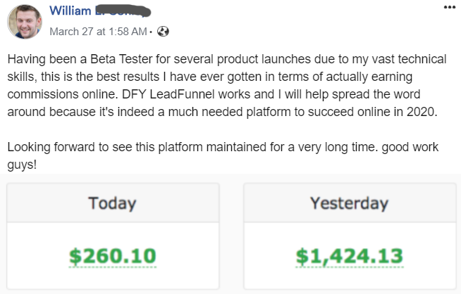 It doesn't get realer than this. I am NOT one of those marketers who solely rely on launch profit to earn a living online so there's no reason to promise you thousands of dollars that you may not achieve in 30 days. I am about to welcome you into my tribe so I have to build our business relationship on "Trust". Whether you are a lazy fellow or even worse, DFY LeadFunnel will at least generate $1880 per month for you if you quickly activate your account now that you're right in front of your PC. I can comfortably guarantee you $2k per month with this app.